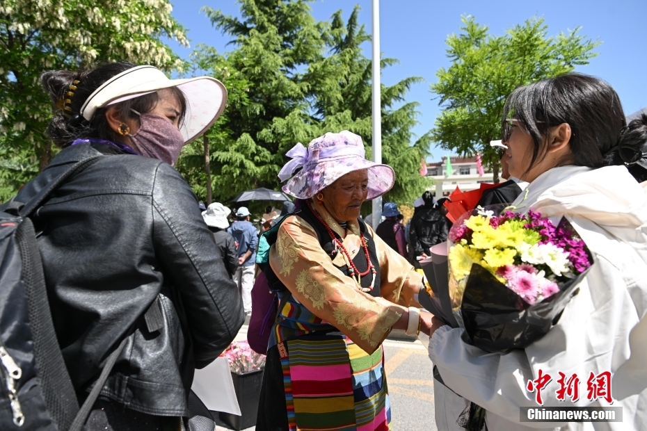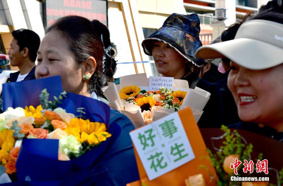 6月9日,西藏拉薩江蘇實(shí)驗(yàn)中學(xué)考點(diǎn)外親友為考生送鮮花。當(dāng)日,西藏自治區(qū)2025年普通高考完成所有科目考試,2025年西藏高考落下帷幕。中新社記者 貢嘎來(lái)松 攝