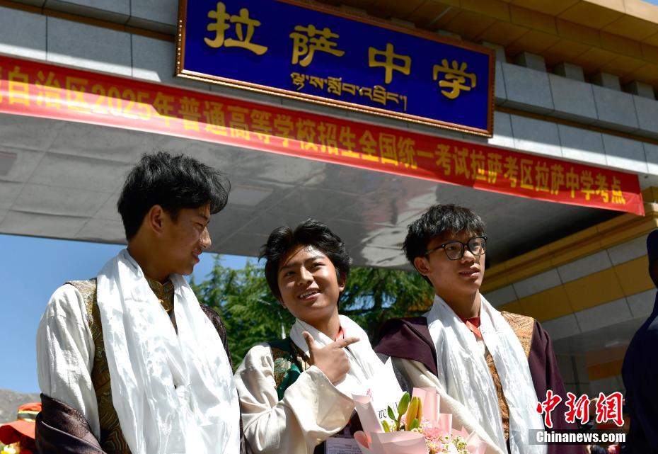 6月9日上午11時(shí)30分,西藏自治區(qū)2025年普通高考完成所有科目考試。圖為結(jié)束考試的考生們?cè)诶_市拉薩中學(xué)考點(diǎn)外留影。中新社記者 李林 攝