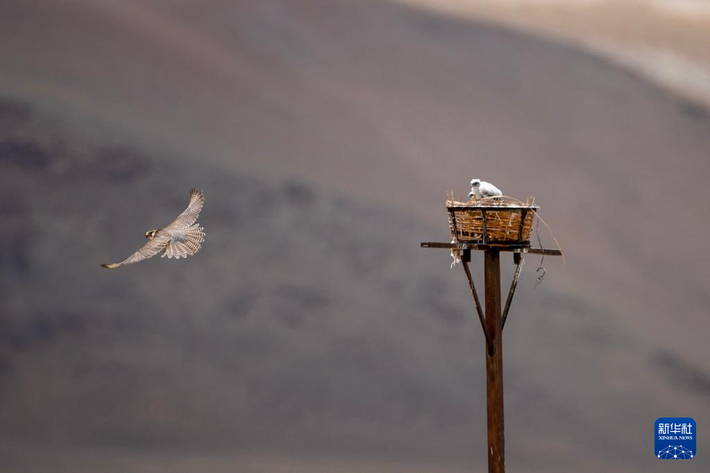 在位于西藏自治區(qū)那曲市尼瑪縣的羌塘國家級自然保護區(qū)核心區(qū)深處,一座座人工鷹架吸引游隼、大鵟等猛禽停棲、筑巢。