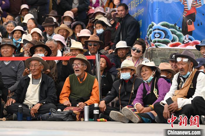 圖為民眾在觀看藏戲《智美更登》。中新社記者 貢嘎來松 攝