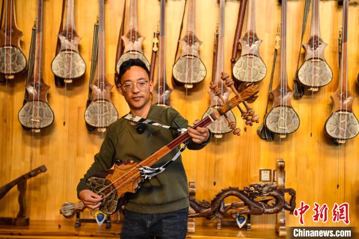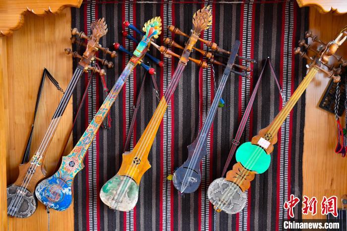 6月14日,記者走進(jìn)西藏自治區(qū)日喀則市拉孜縣熱薩鄉(xiāng),探訪(fǎng)中國(guó)國(guó)家級(jí)非物質(zhì)文化遺產(chǎn)“扎念琴制作技藝”的具體制作過(guò)程。扎念琴,又名六弦琴,是西藏傳統(tǒng)歌舞“堆諧”中最常用的彈撥樂(lè)器。扎念,藏語(yǔ)意為“悅耳動(dòng)聽(tīng)之聲”。在西藏,扎念琴深受廣大群眾喜愛(ài)。2014年,“扎念琴制作技藝”入選第四批中國(guó)國(guó)家級(jí)非物質(zhì)文化遺產(chǎn)代表性項(xiàng)目名錄。據(jù)了解,扎念琴制作共有5道基本程序:第一步,將整根木材掏空,做成共鳴箱;第二步,制作中間空心的琴桿,裝上名為“卡杺”的面板;第三步,雕刻“馬頭”或“龍頭”形狀的琴頭,安裝在琴桿頂部;第四步,制作附在琴頭、呈半圓形、向后彎曲且中間開(kāi)有弦槽的扎念弦軸。最后一步,挑選羊腸、牛筋、絲線(xiàn)等不同材料來(lái)制作琴弦。扎念琴制作技藝的特別之處在于,為了琴身的美觀,初制后還要通過(guò)雕刻馬頭、龍頭、火焰等形狀作為裝飾,讓扎念琴更具特色。圖為制作完成的扎念琴。貢確 攝