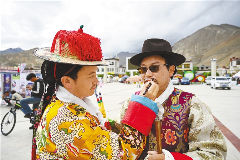 在日喀則市喜迎西藏自治區(qū)成立60周年暨2025年“文化和自然遺產(chǎn)日”非遺宣傳展示活動中,來自全市各縣(區(qū))的19支藏戲隊輪番展演,各色非遺產(chǎn)品集中亮相,為現(xiàn)場觀眾獻(xiàn)上了一場“非遺盛宴”。