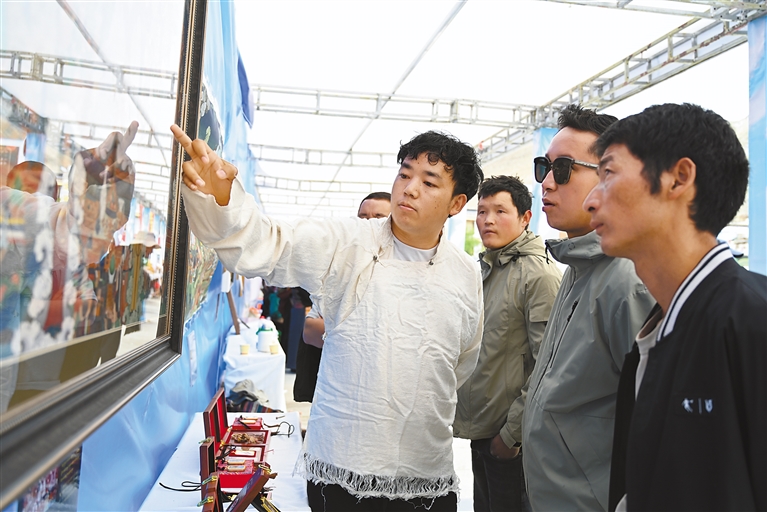 在欣賞視聽盛宴的同時,國家級非遺項目江孜卡墊織造技藝、自治區(qū)級非遺項目牛村陶器制作技藝、市級非遺項目恰哇編織技藝等50個非遺項目,以及民族手工業(yè)產(chǎn)品、南木林縣縣級非遺產(chǎn)品集中展覽展銷,備受消費(fèi)者青睞。各非遺產(chǎn)品展銷點(diǎn)收入不斷、訂單不斷,經(jīng)初步統(tǒng)計,活動現(xiàn)場非遺產(chǎn)品銷售總額達(dá)45萬余元。