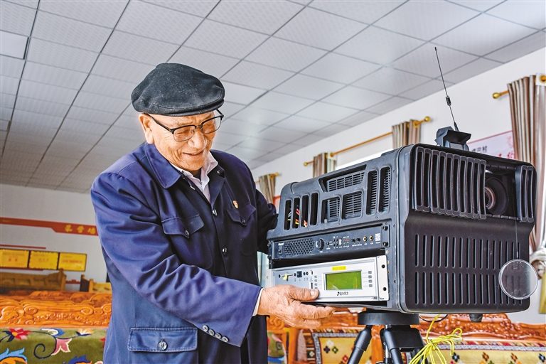 仁真平措說:“自從當(dāng)了放映員,幾十年里,只干放電影一件事。甭管多難,咱干了這行,就得干好,得對得起老百姓的期待?!?/p>