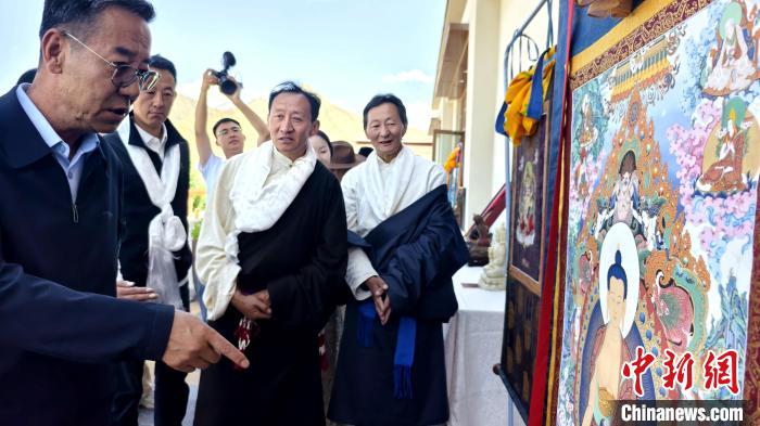 圖為參加《YOOBEI守藝人計(jì)劃》啟動(dòng)儀式的工藝美術(shù)大師參觀唐卡等作品。貢桑拉姆 攝