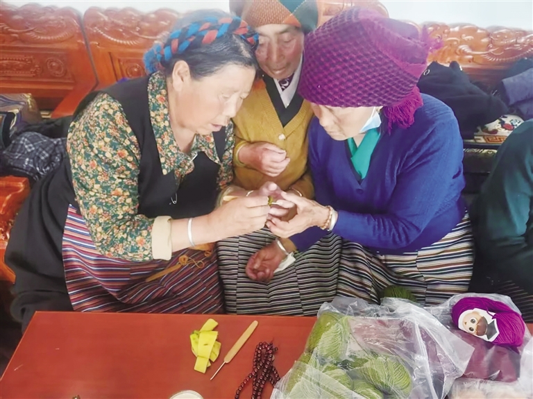 幸福院的老人正在進行針織技藝交流。圖由拉薩市民政局提供