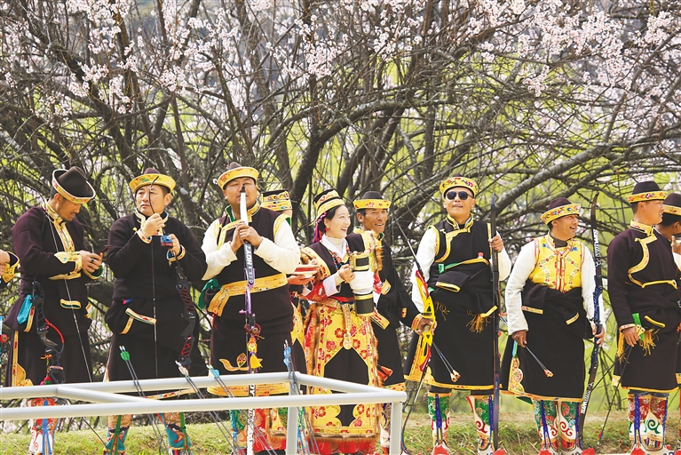 圖為2025年林芝桃花旅游文化節(jié)巴宜區(qū)分會(huì)場(chǎng)工布響箭展演活動(dòng)現(xiàn)場(chǎng)。記者 謝筱純 攝