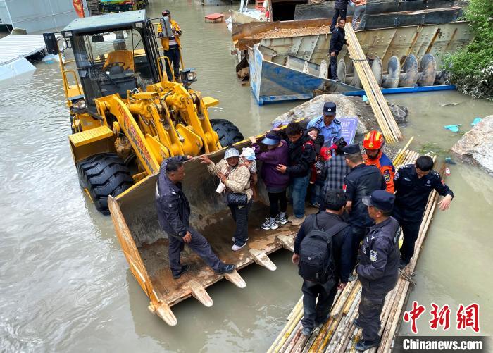 圖為7月8日,西藏吉隆出入境邊防檢查站民警轉(zhuǎn)移口岸區(qū)域受災(zāi)民眾。肖富貴 攝