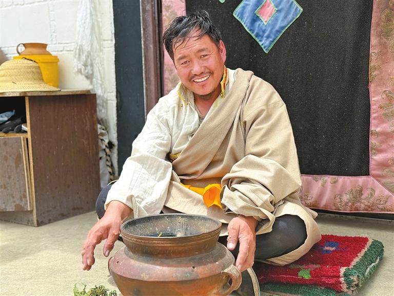 “早些年,彭崗陶器主要用于儲存牛奶、青稞酒、酥油茶。得益于黏土的特性,制作出來的陶罐存儲物品不易變味,因而深受大家喜愛?!崩_市尼木縣帕古鄉(xiāng)彭崗村3組的桑珠娓娓道來。2024年6月,桑珠被評選為縣級非物質(zhì)文化遺產(chǎn)代表性傳承人,他與彭崗陶器技藝的緣分已延續(xù)27載。