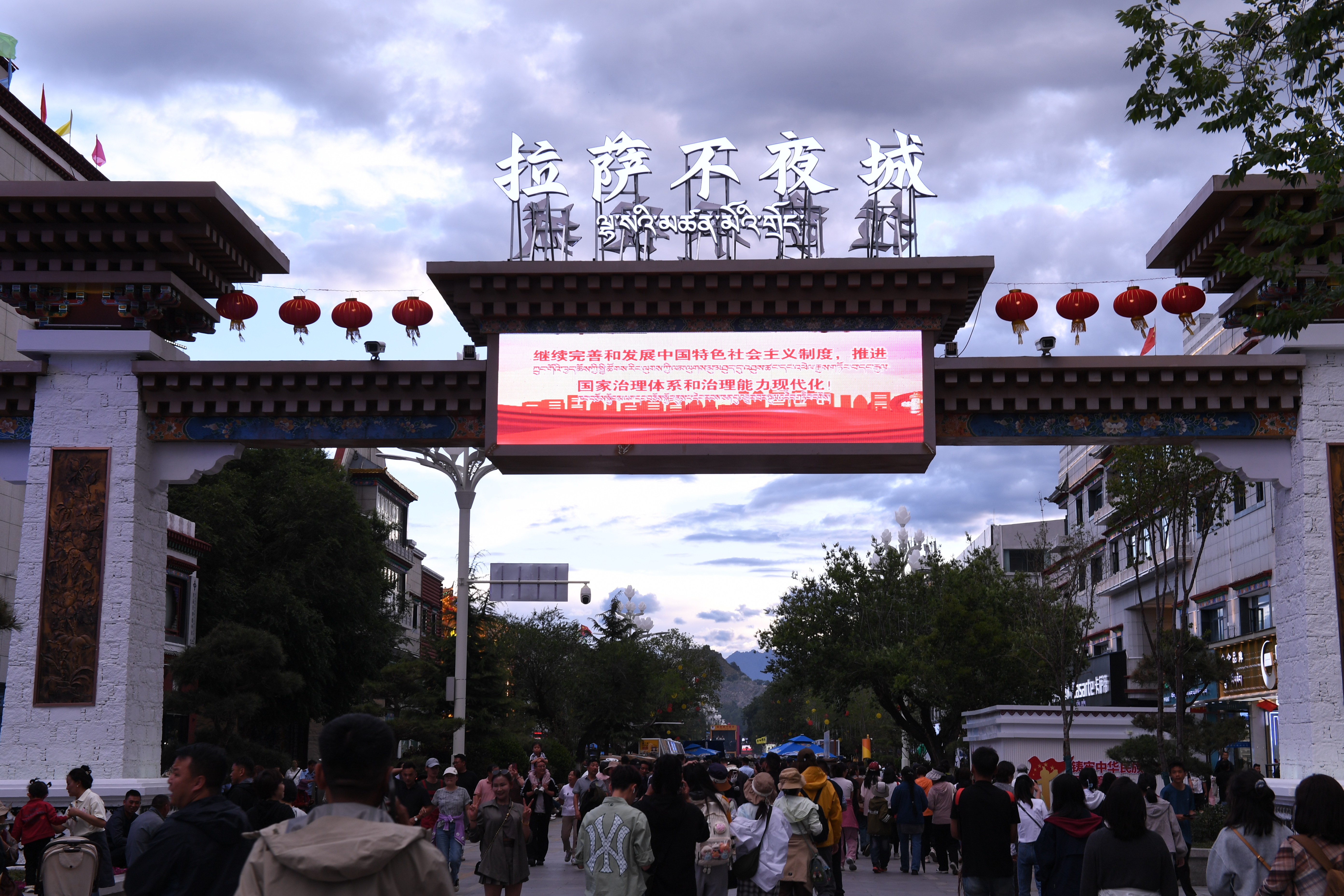 開街首日,藏式燈籠與LED光帶將整條街道裝點得宛如銀河落地,標(biāo)志著拉薩正式邁入“全域全時旅游”新時代。