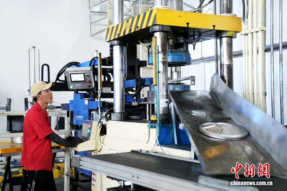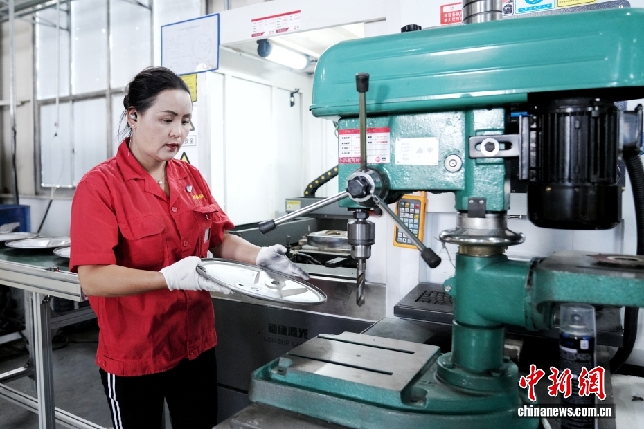 7月17日,在位于拉薩的西藏尚廚炊具科技有限公司,工人使用機(jī)械生產(chǎn)高壓鍋鍋蓋。受西藏海拔高氣壓低的影響,長(zhǎng)期以來(lái)西藏民眾面臨飲用水沸點(diǎn)低、食物難以煮熟、普通高壓鍋不適用高原環(huán)境等問(wèn)題的困擾。2022年,該公司作為首家高原地區(qū)多功能烹飪炊具生產(chǎn)企業(yè)落地拉薩,研發(fā)、生產(chǎn)、銷售高原多功能炊具產(chǎn)品,促進(jìn)西藏經(jīng)濟(jì)發(fā)展的同時(shí)也緩解了西藏民眾的飲食困擾。中新社記者 張祥毅 攝