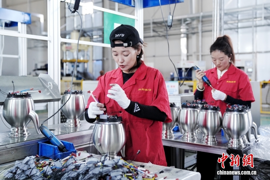 7月17日,在位于拉薩的西藏尚廚炊具科技有限公司,工人生產(chǎn)全自動(dòng)酥油茶壺。受西藏海拔高氣壓低的影響,長(zhǎng)期以來(lái)西藏民眾面臨飲用水沸點(diǎn)低、食物難以煮熟、普通高壓鍋不適用高原環(huán)境等問(wèn)題的困擾。2022年,該公司作為首家高原地區(qū)多功能烹飪炊具生產(chǎn)企業(yè)落地拉薩,研發(fā)、生產(chǎn)、銷售高原多功能炊具產(chǎn)品,促進(jìn)西藏經(jīng)濟(jì)發(fā)展的同時(shí)也緩解了西藏民眾的飲食困擾。中新社記者 張祥毅 攝