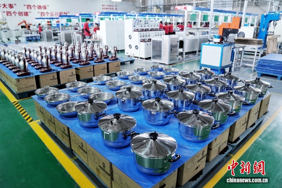 7月17日,在位于拉薩的西藏尚廚炊具科技有限公司,生產(chǎn)車間擺放的炊具產(chǎn)品。受西藏海拔高氣壓低的影響,長(zhǎng)期以來(lái)西藏民眾面臨飲用水沸點(diǎn)低、食物難以煮熟、普通高壓鍋不適用高原環(huán)境等問(wèn)題的困擾。2022年,該公司作為首家高原地區(qū)多功能烹飪炊具生產(chǎn)企業(yè)落地拉薩,研發(fā)、生產(chǎn)、銷售高原多功能炊具產(chǎn)品,促進(jìn)西藏經(jīng)濟(jì)發(fā)展的同時(shí)也緩解了西藏民眾的飲食困擾。中新社記者 張祥毅 攝