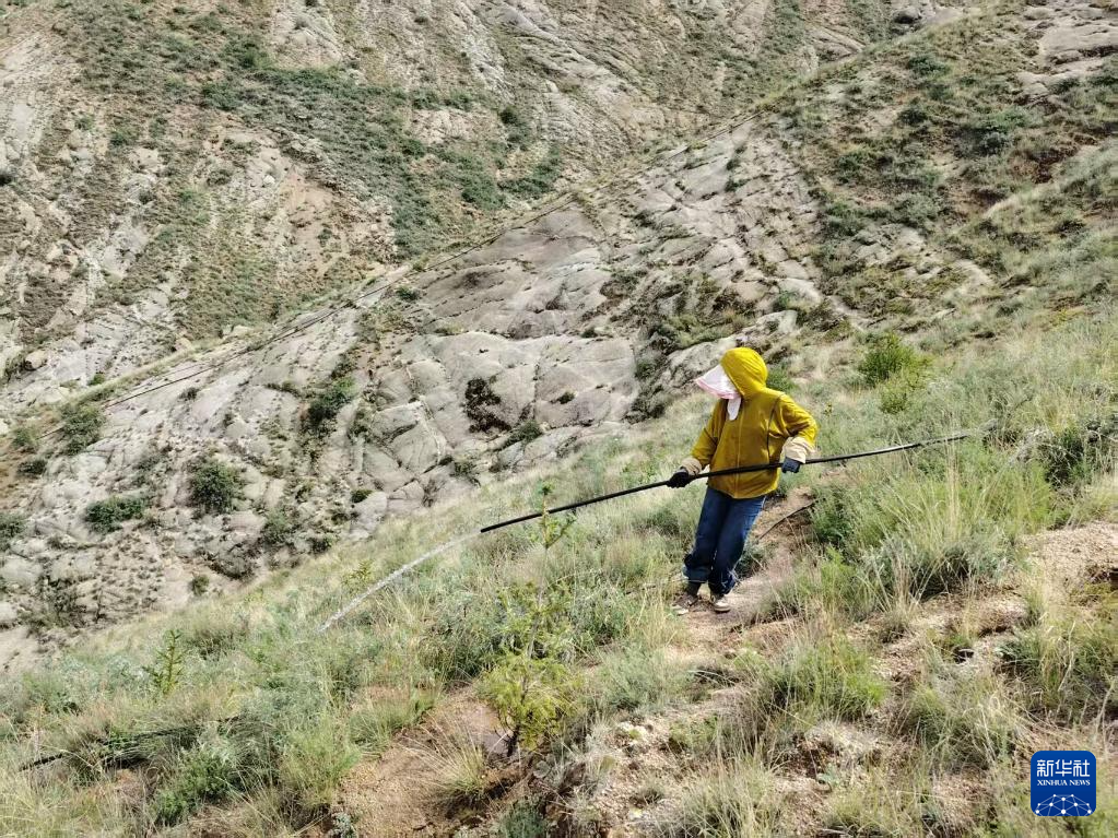 4年間,她的工作很單調(diào),挖坑、種樹(shù)、澆水、養(yǎng)護(hù);她的工作很辛苦,坑要挖在陡峭貧瘠的山體上,土要從遠(yuǎn)方搬運(yùn)過(guò)來(lái),水最初只能靠人舉著管子一點(diǎn)點(diǎn)澆……寒來(lái)暑往,日復(fù)一日。