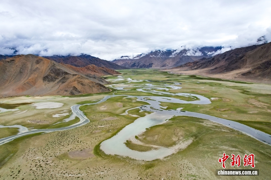 7月19日,航拍西藏阿里麻嘎藏布河,河谷兩岸夏日風(fēng)光旖旎。(無人機(jī)照片)中新社記者 張祥毅 攝