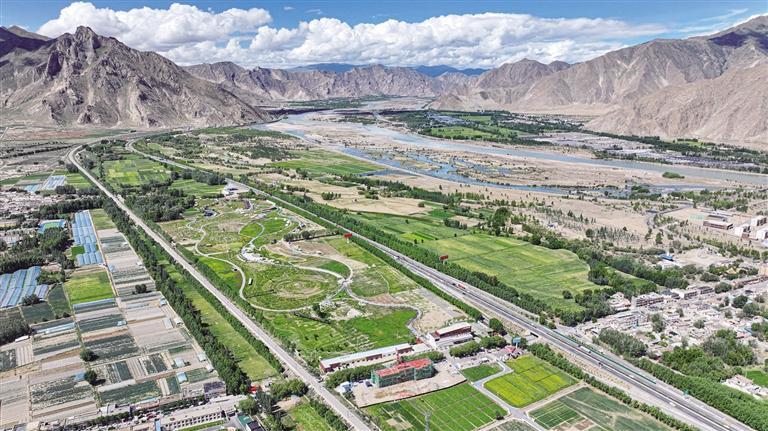 曲水縣才納鎮(zhèn)國(guó)家現(xiàn)代農(nóng)業(yè)示范區(qū)距拉薩市區(qū)30公里,毗鄰拉薩貢嘎國(guó)際機(jī)場(chǎng),拉日鐵路穿境而過,憑借獨(dú)特區(qū)位成為連接城鄉(xiāng)、輻射內(nèi)外的農(nóng)業(yè)樞紐區(qū)。