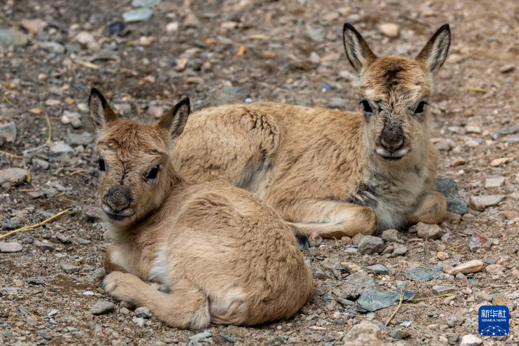 這是措羅木管理站收留的兩只離群藏羚羊幼崽(7月14日攝)。新華社記者 姜帆 攝?