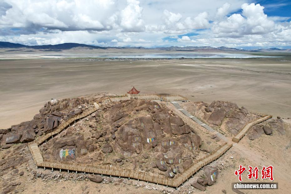 7月20日,在西藏阿里地區(qū)革吉縣鹽湖鄉(xiāng)拍攝的巖畫遺址公園,該遺址公園是“鹽羊古道”全域旅游景點(diǎn)之一。一千多年前,阿里地區(qū)有50多家駐扎的鹽幫,將自然鹽用羊馱牛背邊放牧邊運(yùn)輸?shù)姆绞?,運(yùn)送到普蘭、日喀則、印度、尼泊爾等地,并用以物易物的方式換回青稞、磚茶、布料等日常生活所需的物品,從而孕育了遠(yuǎn)負(fù)盛名的“鹽羊古道”傳奇。近年來,當(dāng)?shù)亻_辦粗鹽巴加工廠、打造“鹽羊古道”旅游品牌等方式,使千年“鹽羊古道”煥發(fā)新生機(jī)。(無人機(jī)照片)中新社記者 張祥毅 攝