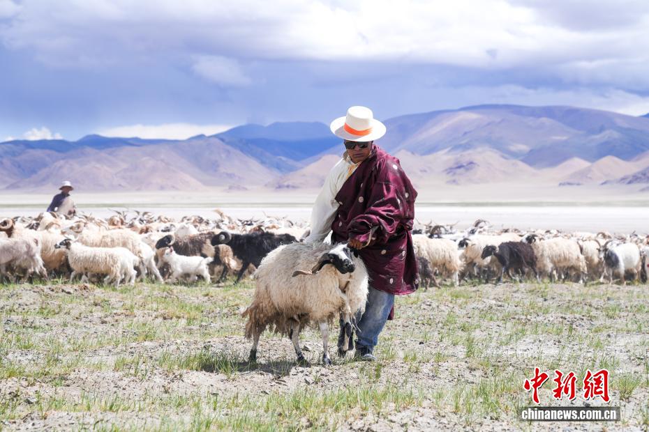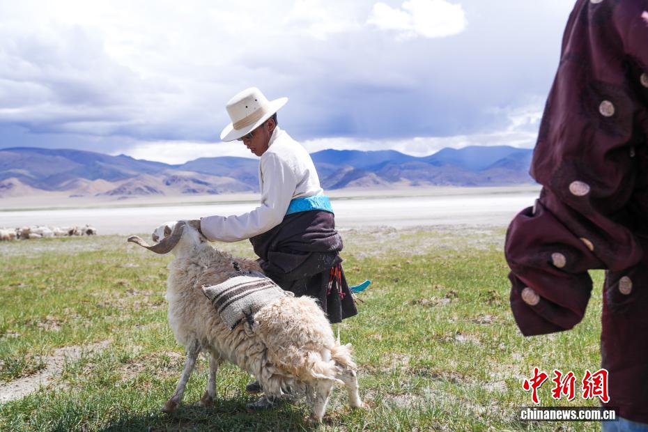 7月20日,在西藏阿里地區(qū)革吉縣鹽湖鄉(xiāng),牧民從羊群中牽引一只將要馱負(fù)鹽袋的羊。一千多年前,阿里地區(qū)有50多家駐扎的鹽幫,將自然鹽用羊馱牛背邊放牧邊運(yùn)輸?shù)姆绞?,運(yùn)送到普蘭、日喀則、印度、尼泊爾等地,并用以物易物的方式換回青稞、磚茶、布料等日常生活所需的物品,從而孕育了遠(yuǎn)負(fù)盛名的“鹽羊古道”傳奇。近年來,當(dāng)?shù)亻_辦粗鹽巴加工廠、打造“鹽羊古道”旅游品牌等方式,使千年“鹽羊古道”煥發(fā)新生機(jī)。中新社記者 張祥毅 攝