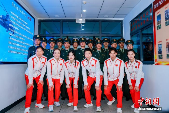 宣講結(jié)束后,運動場上的互動點燃了全場熱情。乒乓臺前,馬龍手持球拍與官兵切磋球技;羽毛球場,陳清晨與戰(zhàn)士組隊,你來我往間展現(xiàn)默契與活力;拳擊場上,李倩親自示范動作要領(lǐng),手把手和官兵“過招”;瑜伽室里,郭崎琪舒展身姿,與女官兵歡樂共舞。此外,潘展樂還與官兵們進行了遠(yuǎn)程連線,分享他的水上技巧和訓(xùn)練經(jīng)驗。