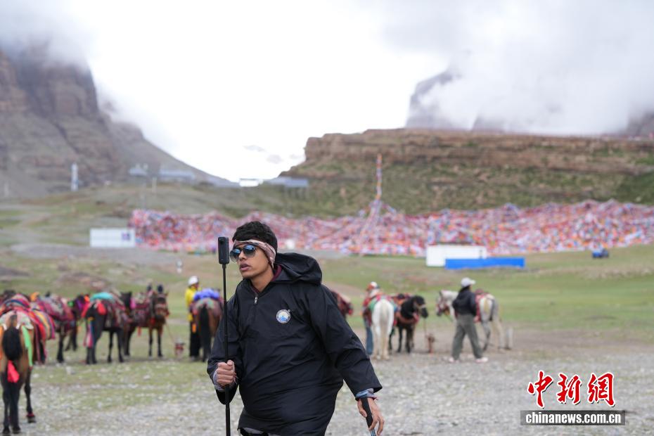 7月21日,一位來(lái)自印度的徒步旅行者在岡仁波齊山腳拍攝徒步視頻。岡仁波齊位于西藏阿里地區(qū)普蘭縣境內(nèi),是岡底斯山的主峰,也是藏傳佛教的神山之一,每年吸引眾多信徒前往轉(zhuǎn)山,并衍生出徒步旅行的經(jīng)典路線。每年來(lái)自國(guó)內(nèi)外的徒步旅行者為當(dāng)?shù)貏?chuàng)造就業(yè)機(jī)會(huì)的同時(shí),也推動(dòng)了文旅產(chǎn)業(yè)的發(fā)展。中新社記者 張祥毅 攝