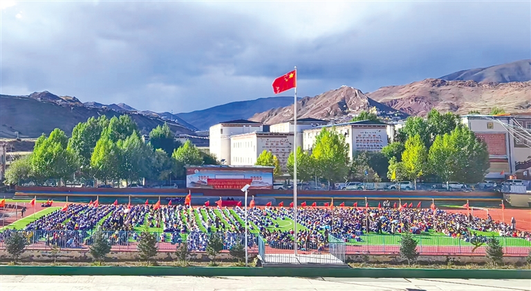 七十余載櫛風(fēng)沐雨,丁青縣小學(xué)早已舊貌換新顏。昔日的鐵皮房、泥土地,已被占地近3萬平方米、建筑面積超1.2萬平方米的現(xiàn)代化校園取代。寬敞明亮的教學(xué)樓、標(biāo)準(zhǔn)化的運(yùn)動場、齊全的各類功能教室,促進(jìn)了孩子們的全面發(fā)展。截至2024年9月,學(xué)校擁有學(xué)生2650余名,教學(xué)班級49個。一支136人的高素質(zhì)教師隊伍扎根于此,教書育人。