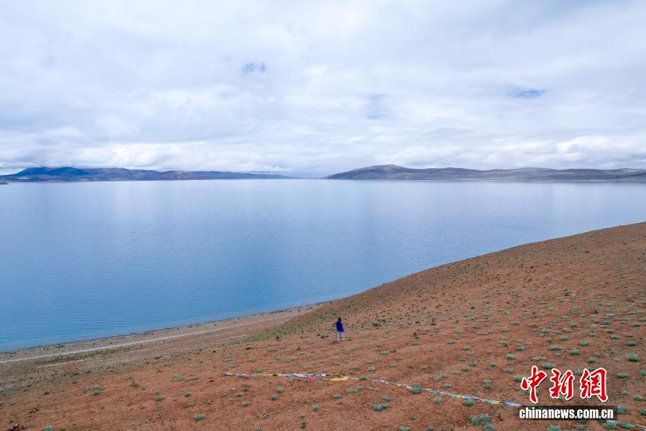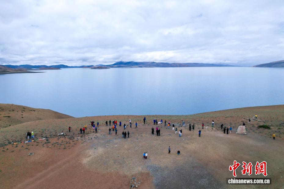 7月22日,游客游覽瑪旁雍錯(cuò)?,斉杂哄e(cuò)與拉昂錯(cuò)位于西藏阿里地區(qū)普蘭縣境內(nèi),兩湖僅有一堤之隔,卻擁有不同的地理特征和咸淡水之分,因而分別被譽(yù)為“圣湖”與“鬼湖”。每年夏天,兩湖與附近的岡仁波齊一道,吸引眾多游客前來(lái)賞景游覽。(無(wú)人機(jī)照片)中新社記者 張祥毅 攝