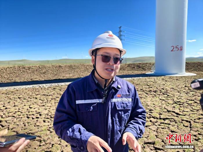 7月17日,“輝煌60載 魅力新西藏”集中采訪活動中,田江偉介紹歐瑪亭嘎100兆瓦風(fēng)電項(xiàng)目建設(shè)情況。中新社記者 程小路 攝