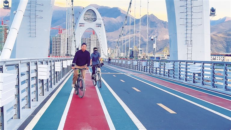 拉薩河畔的公園“綠色騎行帶”,已成為城市休閑健身的亮眼新地標(biāo)。這條綠色廊道沿河岸蜿蜒延伸,將沿線多個生態(tài)公園與地標(biāo)景點串聯(lián)成線,其中橫跨河面的“和美橋” 以現(xiàn)代藏式風(fēng)格的獨特設(shè)計格外吸睛,成為騎行愛好者爭相打卡的網(wǎng)紅地。