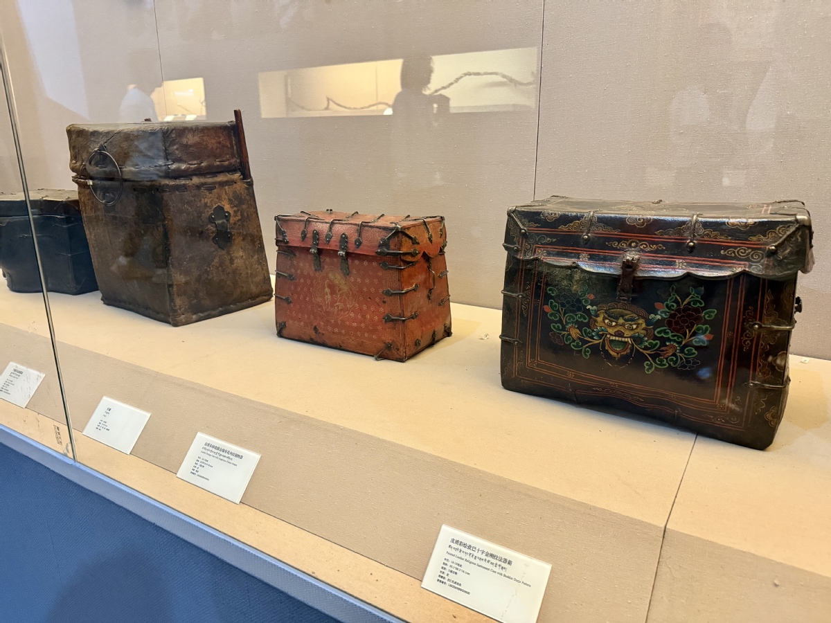 西藏牦牛博物館中幾件牦牛皮制作而成的箱子。