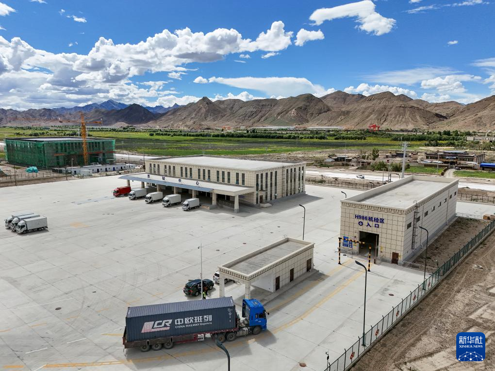 這是7月16日拍攝的日喀則國際陸地港出口貨物查驗場(無人機(jī)照片)。新華社記者 李鑫 攝