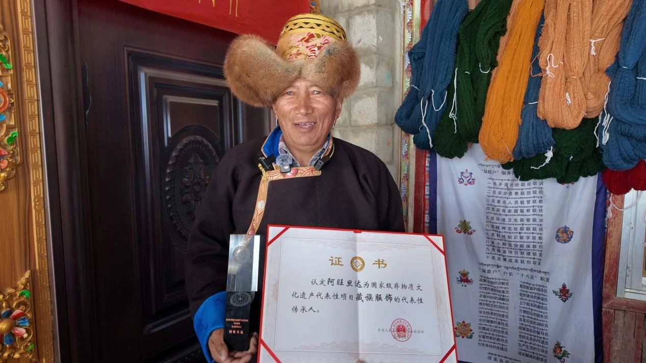 國家級非物質文化遺產代表性項目藏族服飾代表性傳承人阿旺旦達。