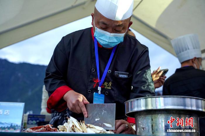 圖為2025年林芝松茸美食文化節(jié)暨特色商品展銷(xiāo)活動(dòng)期間,廚師現(xiàn)場(chǎng)制作松茸菜品。林芝市巴宜區(qū)城鄉(xiāng)供銷(xiāo)有限公司供圖