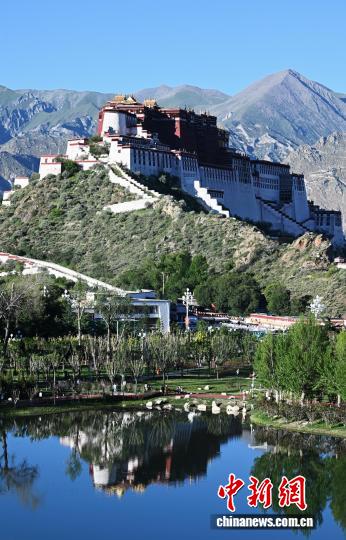 圖為拉薩團(tuán)結(jié)公園水系倒映布達(dá)拉宮。貢嘎來(lái)松 攝