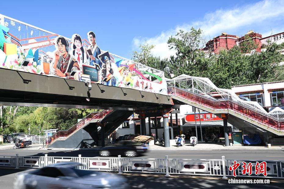 圖為以教育為主題的人行天橋。中新社記者 貢嘎來松 攝