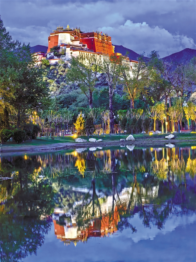 站在藥王山觀景臺眺望,重獲新生的水系如綠色飄帶擁抱著布達(dá)拉宮。