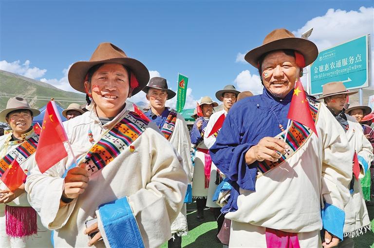 群眾在昂仁縣分會場拍照留念。記者 馬曉艷 攝