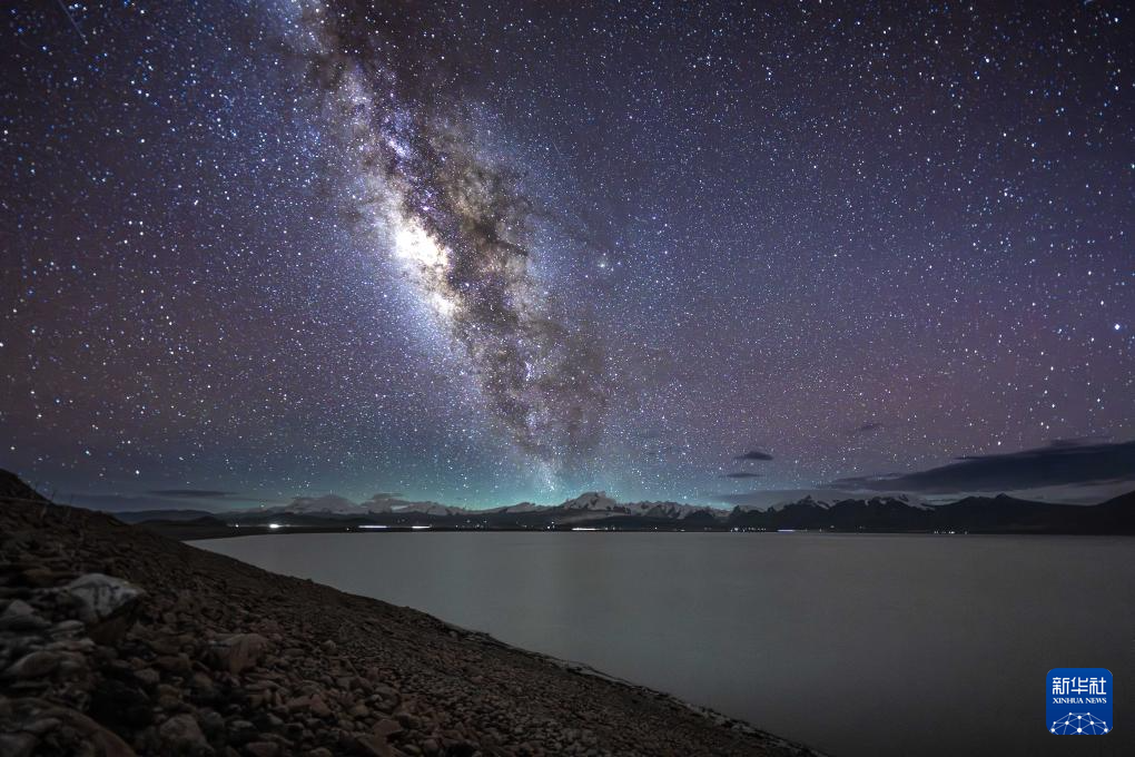 這是在佩枯錯(cuò)拍攝的銀河(8月14日攝)。周邊是英仙座流星雨的幾顆流星。新華社發(fā)(馬理朝攝)
