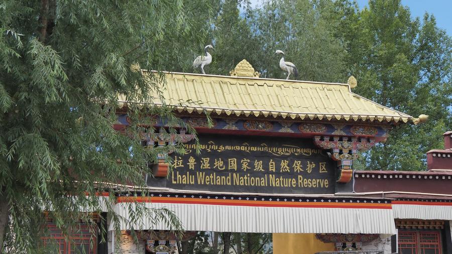 綠樹掩映下的拉魯濕地國家級(jí)自然保護(hù)區(qū)南門。新華社記者 黃智琪 攝