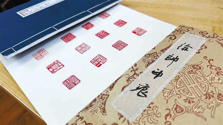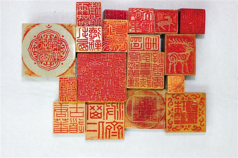 徐帥展示已完成的“西藏自治區(qū)成立60周年”篆刻藝術(shù)作品。