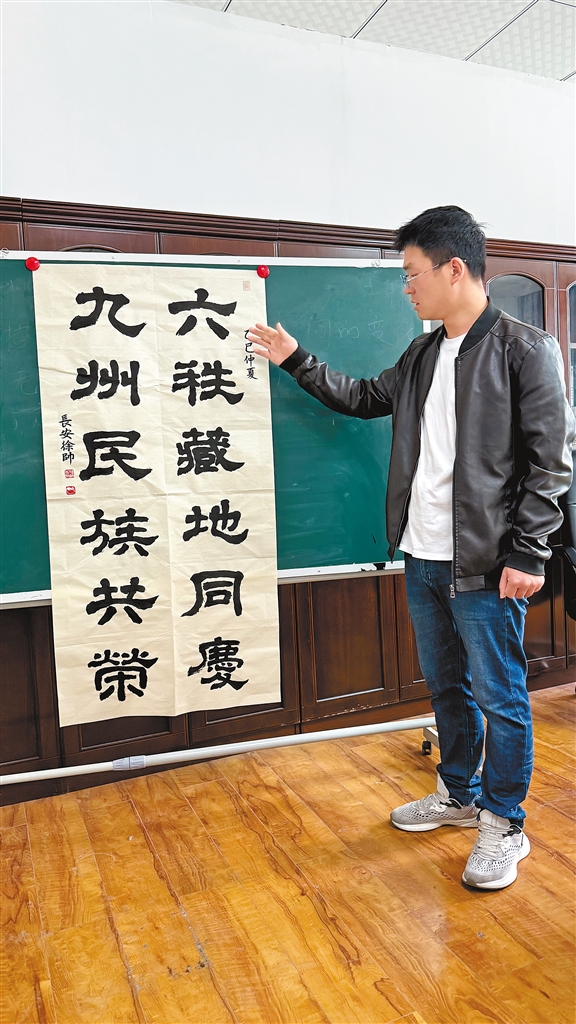 作為西藏自治區(qū)青年聯(lián)合會(huì)委員、西藏自治區(qū)青年書法家協(xié)會(huì)理事,徐帥的作品多次獲獎(jiǎng),但他更珍視的是傳承的意義。他在校園開設(shè)書法篆刻工作室,教藏族同學(xué)刻自己的名字印章,也向當(dāng)?shù)厮嚾苏?qǐng)教藏文篆刻技巧。如今,這位即將畢業(yè)的碩士研究生,最大的愿望是舉辦一場(chǎng)個(gè)人篆刻藝術(shù)展。