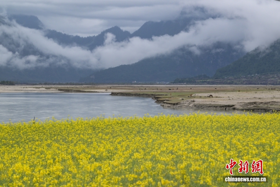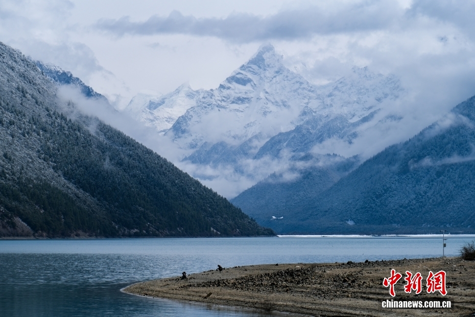 位于西藏林芝的巴松錯迎來一場春雪,雪后風光如畫。圖為巴松錯與遠處的雪山風光。中新社記者 江飛波 攝