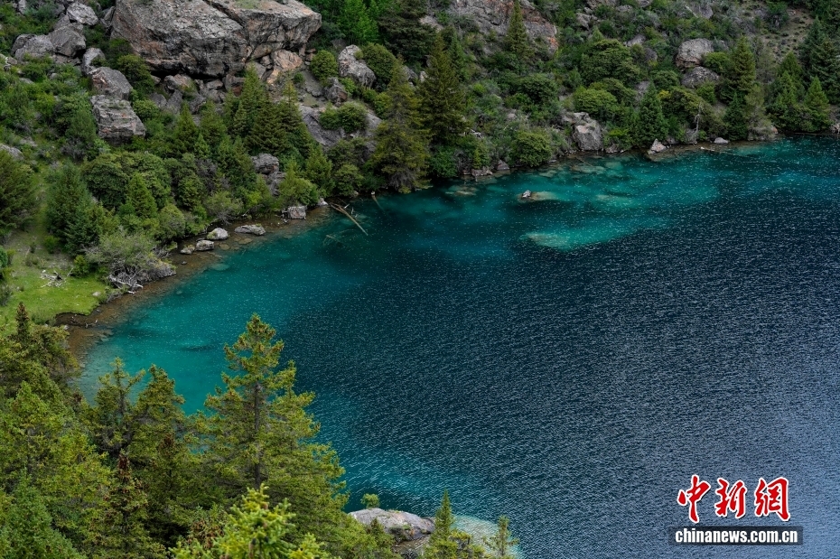 俯瞰西藏昌都三色湖風光。三色湖位于西藏昌都邊壩縣普玉村境內。夏日,三色湖周邊郁郁蔥蔥,景色秀麗。中新社記者 李林 攝