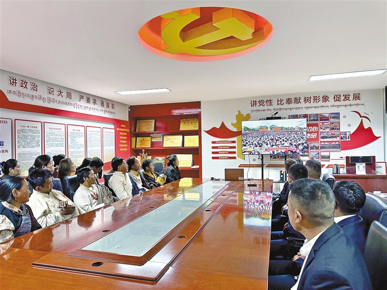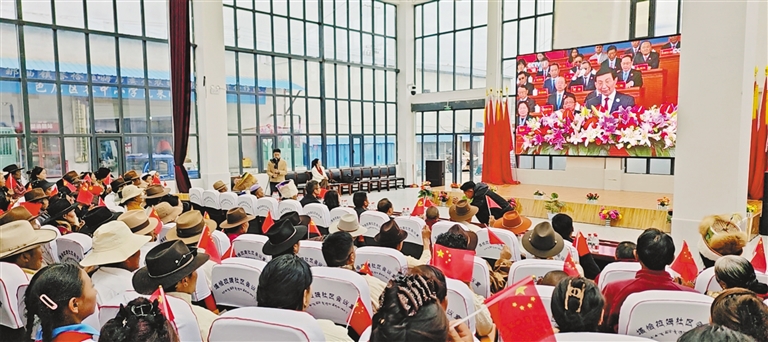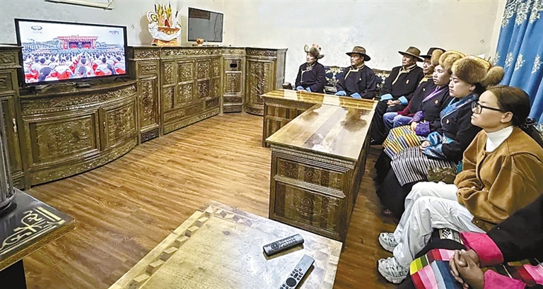 日喀則市謝通門縣仁欽則鄉(xiāng)倫珠孜村的村民們集中觀看了現(xiàn)場直播,現(xiàn)場不時傳出熱烈掌聲。老黨員仁增多吉感慨萬千:“我深切體會到了沒有中國共產(chǎn)黨就沒有社會主義新西藏,就沒有我們今天的幸福生活。我將始終維護祖國統(tǒng)一,加強民族團結(jié),堅定不移聽黨話、矢志不渝跟黨走?!?/p>