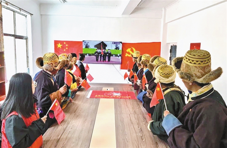 人民銀行日喀則市分行駐昂仁縣日吾其鄉(xiāng)日蘇村、西嘎村、普夏村、措嘎村、央曲村工作隊,組織村“兩委”班子、黨員干部、群眾集中收看了慶祝西藏自治區(qū)成立60周年大會實況直播,共同見證了這一重要歷史時刻。觀看過程中,大家心情激動,普夏村老人扎西表示:“以前怎么都不敢想,坐在家里就能看到拉薩的場景,在中國共產(chǎn)黨的領(lǐng)導(dǎo)下,我現(xiàn)在過上了以前想也不敢想的幸福生活,相信以后的生活會越來越好!”
