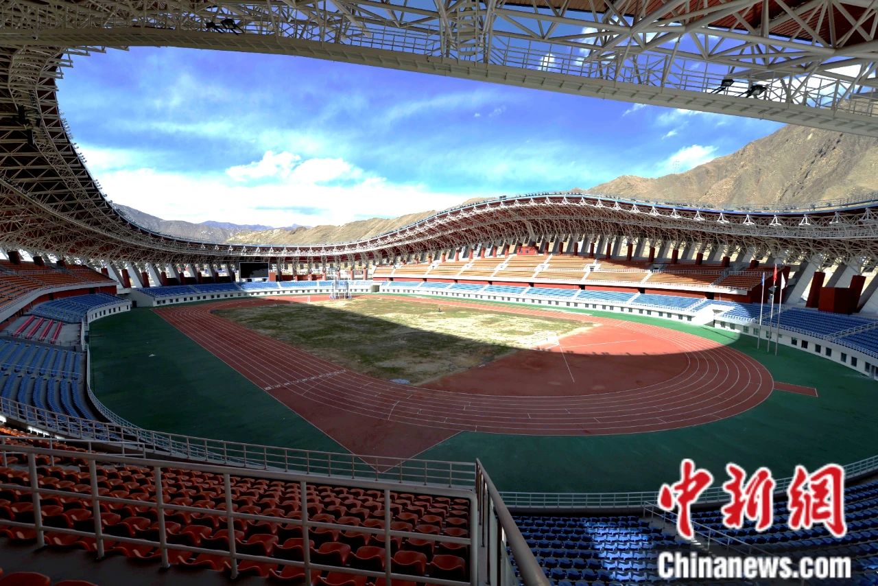 2014年,拉薩文化體育中心竣工,是世界海拔最高現代化體育場館。圖為拉薩體育場內景。中新社記者 李林 攝