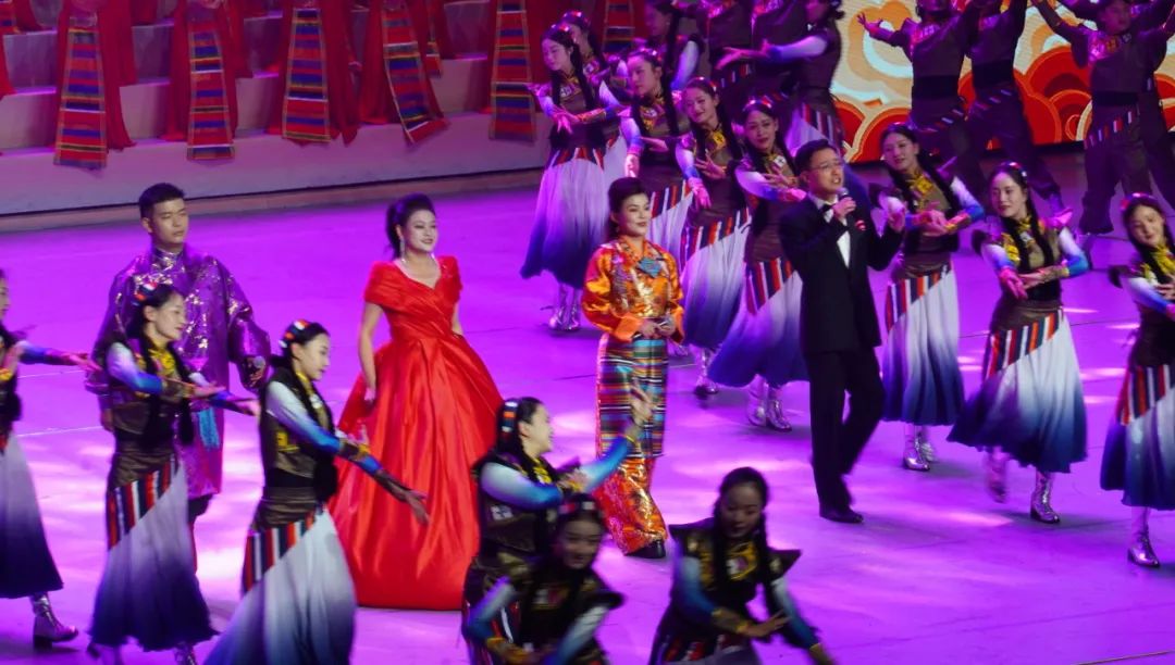 中篇則聚焦改革開放帶來的變革,情境歌舞《奔跑的高原》用充滿活力的編排展現(xiàn)雪域高原的蓬勃生機(jī),歌曲聯(lián)唱《家鄉(xiāng)美》以熟悉的旋律喚起觀眾對家鄉(xiāng)發(fā)展的共鳴,配樂講述《厚愛》更是以溫情筆觸傳遞黨和國家對西藏的關(guān)懷。紅濤導(dǎo)演強(qiáng)調(diào):“這一篇章的關(guān)鍵是‘變’,我們要讓觀眾直觀感受到改革開放如何為西藏注入新活力,讓高原從傳統(tǒng)走向現(xiàn)代,從封閉走向開放。”