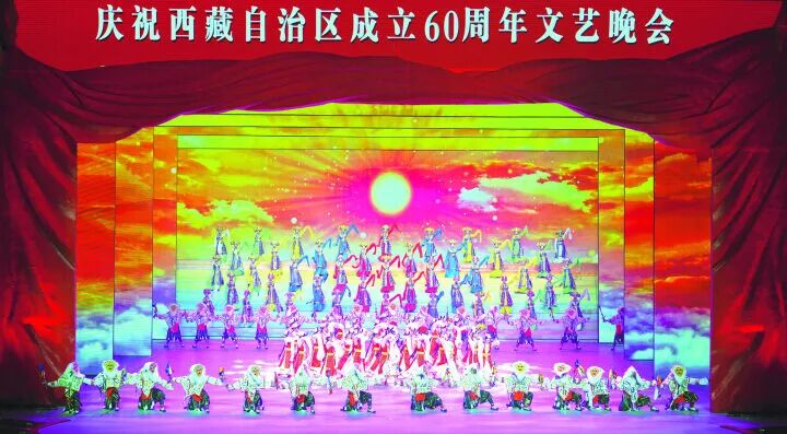 8月20日晚,慶祝西藏自治區(qū)成立60周年文藝晚會(huì)《雪域歡歌》在西藏大劇院舉行。晚會(huì)分為3個(gè)篇章,上篇《幸福的起點(diǎn)》《踏歌慶賀》《農(nóng)場(chǎng)五朵金花》等歌舞,展現(xiàn)了建設(shè)社會(huì)主義新西藏的生動(dòng)場(chǎng)景;中篇通過情境歌舞《奔跑的高原》、歌曲聯(lián)唱《家鄉(xiāng)美》、配樂講述《厚愛》,表現(xiàn)了改革開放給雪域高原帶來的蓬勃生機(jī);下篇通過《新的征程》《嘎拉村的歡笑》《琴鶴齊鳴》等作品,勾勒出幸福新西藏的美好圖景。每一個(gè)節(jié)目都是西藏當(dāng)下發(fā)展的縮影,表達(dá)了對(duì)未來美好的展望。