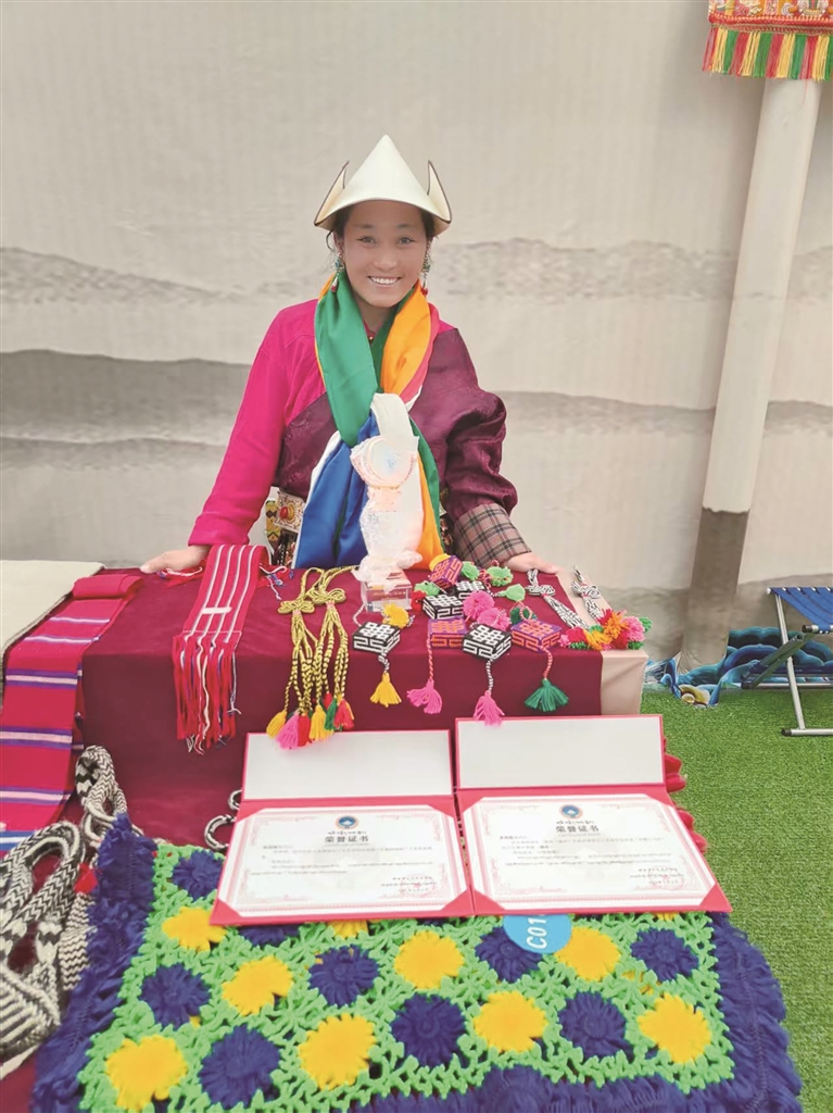 來自色尼區(qū)羅瑪鎮(zhèn)的索朗德吉在比賽中獲得了銅獎,她表示:“未來我希望能夠編織出更多豐富多樣的產品,讓它們走進市場、受到大家的歡迎。”
