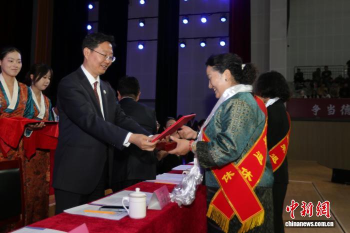 圖為為退休教師頒發(fā)退休證。西藏大學(xué) 供圖